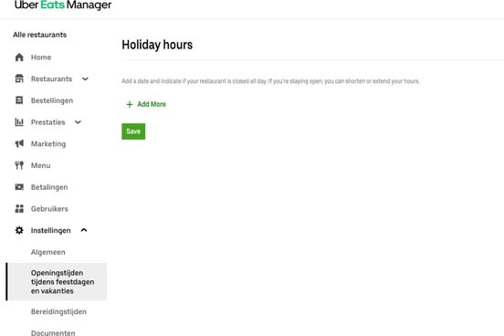 Restaurantinformatie: bekijk en bewerk de naam, het adres, het telefoonnummer, de openingstijden en de ophaalinstructies van je restaurant.
