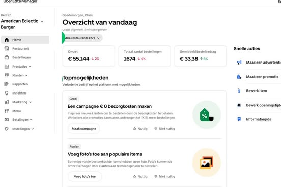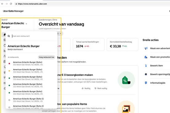 Lees hoe je Uber Eats Manager gebruikt, inlogt, winkelgegevens bewerkt, openingstijden aanpast, meerdere locaties beheert, rollen toewijst, prestaties analyseert, reageert op feedback van klanten en gebruikmaakt van uitgebreide rapportagetools.