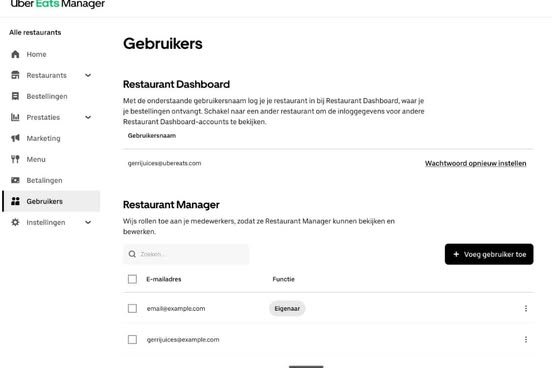 Deze rol biedt toegang tot analyses, feedback van klanten, bestellingen, rapporten en Het beste van Eats.